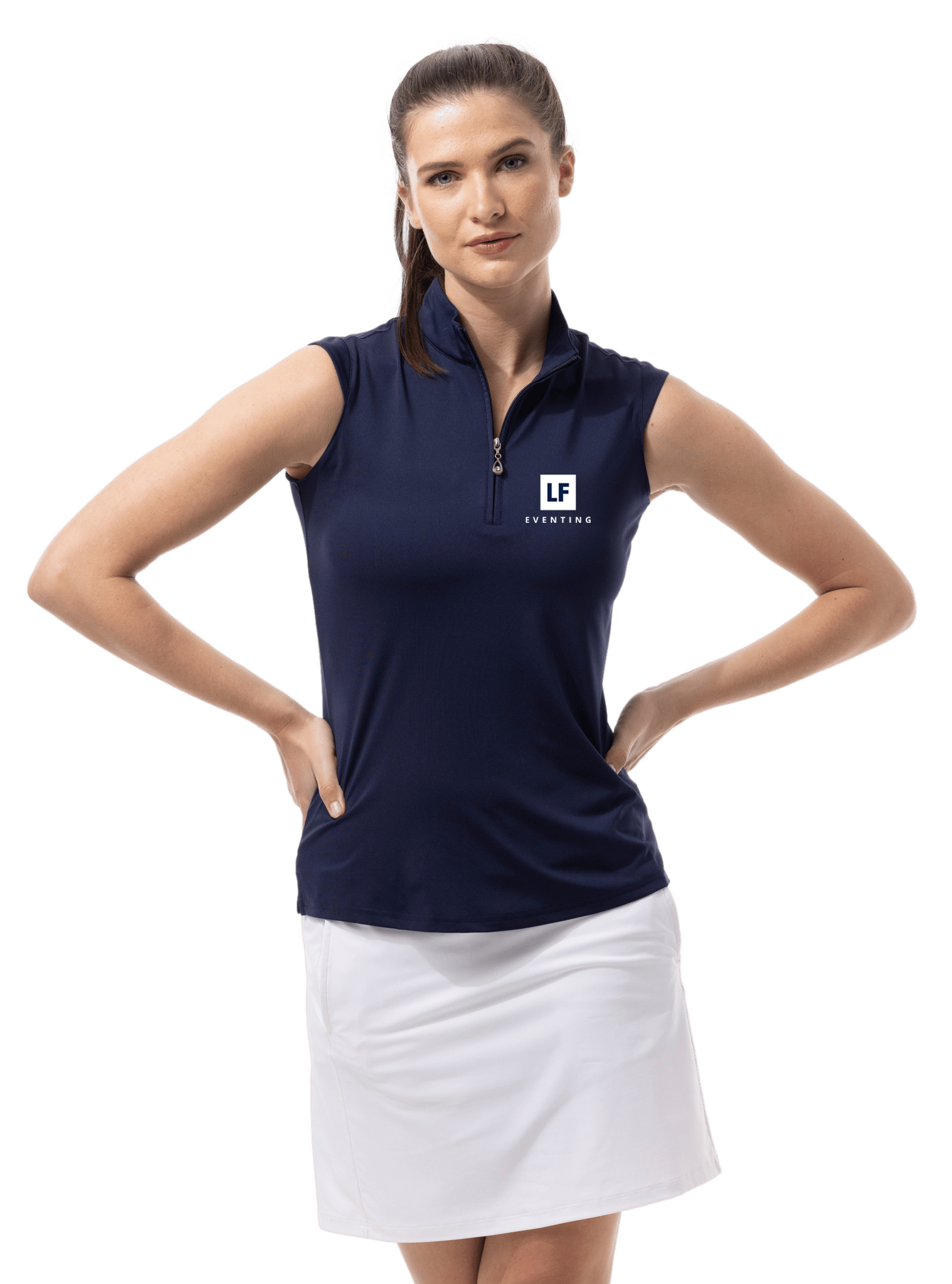 SanSoleil "SunGlow Fabric" Fitted, Sleeveless  Zip Mock offers moisture-wicking, quick-dry, and cooling ventilation. And, most importantly, UPF 50 Protection. SanSoleil's Zip Mock Collar Stand adds extra protection for the back of the neck, while SanSoleil's UV 50 enhanced fabrics provide UV 50+ protection. (Normal fabrics offer much less protection from the sun.) SanSoleil's Sleeveless Tops are great for sports that require fabrics that move and are lightweight for exertion in the sun's heat.