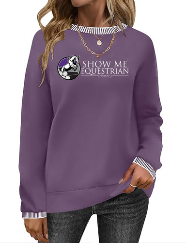 SME/DRF- GIDC- Womens Casual Crewneck Sweatshirt Long Sleeve Stripe Shirt