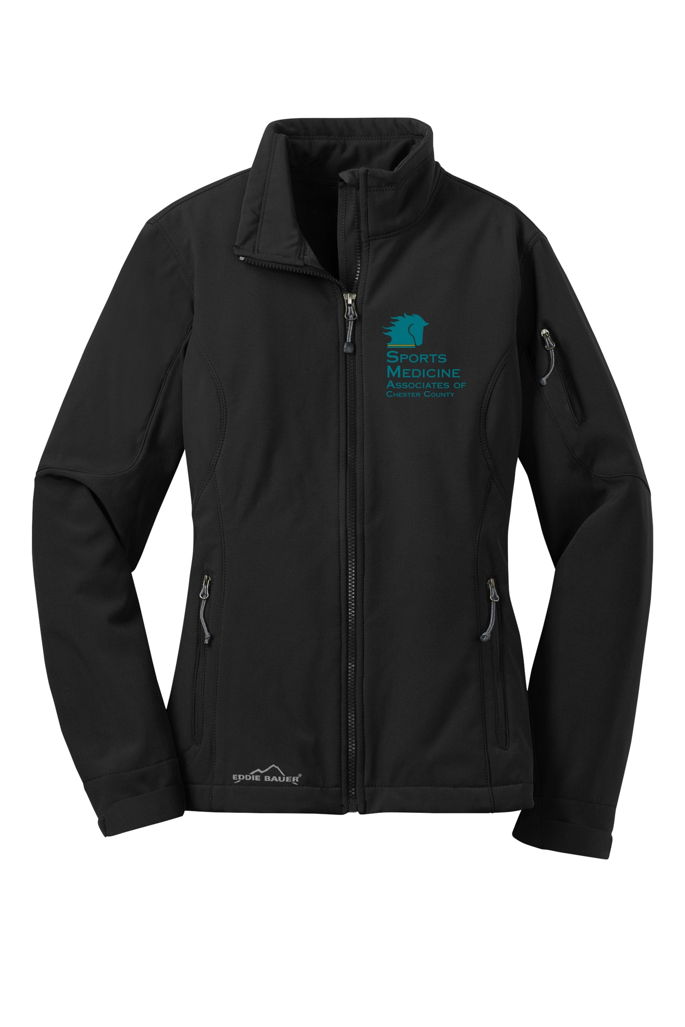 This weather-stopping, three-layer soft shell boasts water protection and breathability due to a 3K/3K fabric. 3000MM fabric water protection rating, 3000G/M² fabric breathability rating, princess seams, interior component loops at back of neck and cuffs for securing to other jackets, front zippered pockets, zippered left sleeve pocket, adjustable tab cuffs with hook and loop closures and an open hem with locking drawcord. Contrast Eddie Bauer logo on right hem. Made of 96/4 poly/spandex bonded to a water-resistant laminated film insert and a 100% polyester fleece interior.