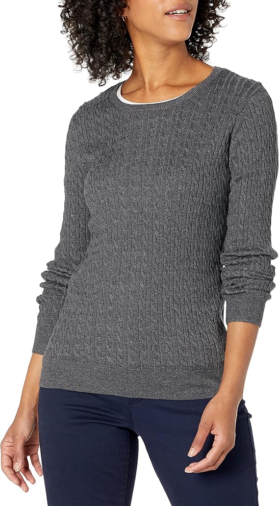 SMACC - GIDC- Women's Essential Lightweight Long-Sleeve Cable Crewneck Sweater