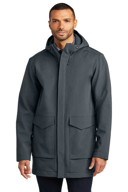 With a longer length for more coverage and patch pockets, this element-fighting 8K/5K parka offers a trend-right option to classic corporate soft shell.