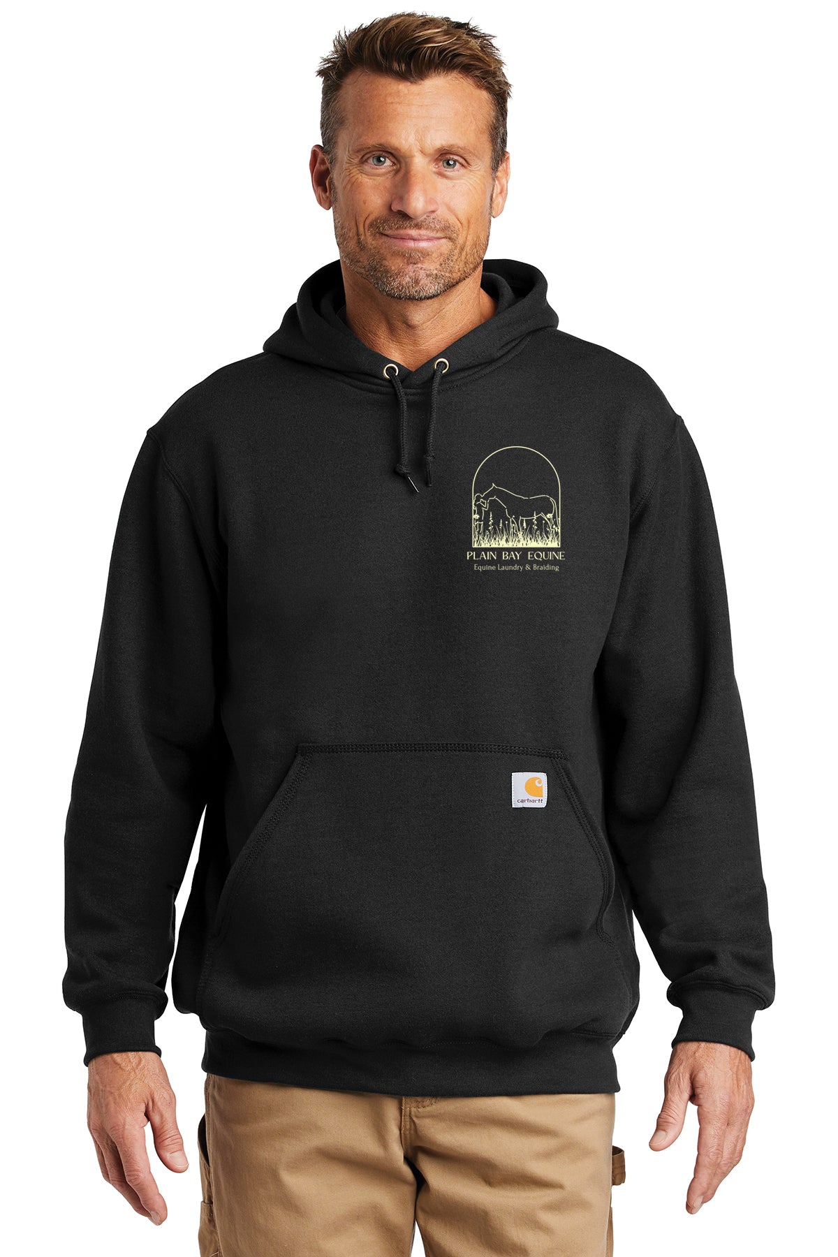- Carhartt label sewn on hand warmer pocket